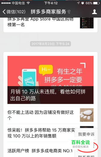 第二,销售额达到1w的商家,可以先对接运营。自然营业额过万的商家可以在拼多多商家服务公众号-联系客服-对接运营处填表申请,如下图: