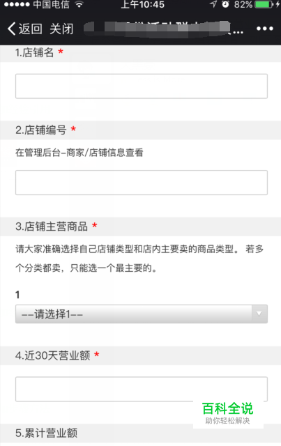 第三,点击对接运营后,会跳转到一份腾讯问卷,填写申报活动的店铺信息:店铺名、店铺编号、店铺主营商品、近30天的营业额、累计营业额、店铺诉求。如下图: