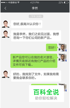 智能名片 智能名片包含使用者的照片、姓名、公司名称、职务、联系方式等丰富信息;可以备注、保存和编辑客户信息,不会因手机或手机号码变更、遗失而造成客户信息丢失。