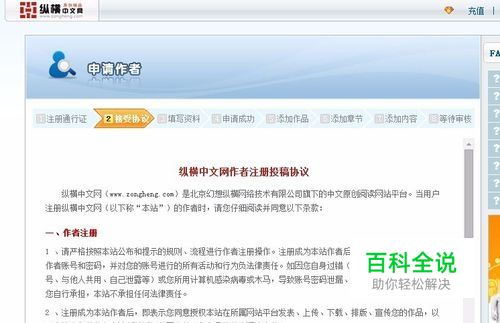 查看”纵横中文网作者注册投稿协议“,点击”同意“