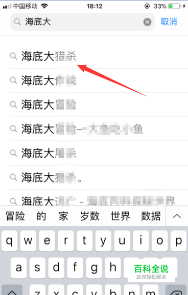进入搜索之后,可以看到一个搜索框,直接在搜索框中输入“海底大猎杀”,选择搜索结果的第一条就可以了,如图所示。