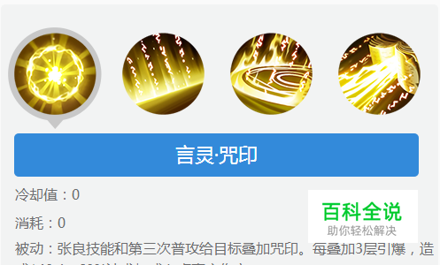 首先是张良的被动技能为“言灵咒印”(详见下方图片内),使张良技能和第三次普攻给目标叠加咒印。每叠加3层引爆,造成140(+60%法术加成)点真实伤害,