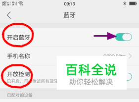 点击开启“蓝牙”,并且把“ 开放检测”的开关打开(这样才能搜索的您的手机)