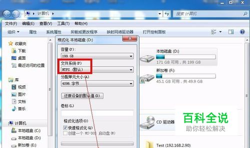 1.2 选择文件格式“NTFS”点击开始按钮,开始格式化硬盘。