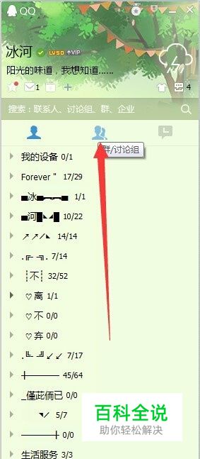 首先我们要登录qq,然后在主面板中选择qq群/讨论组那一项。