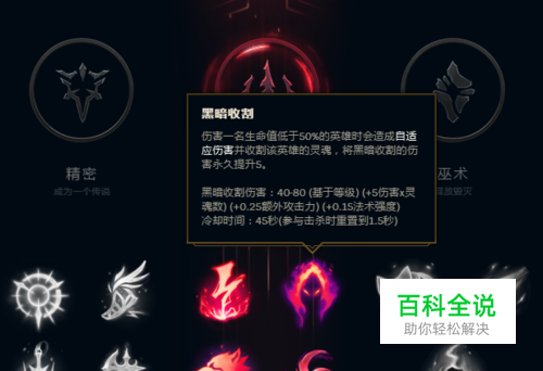 主系基石 劫的被动是敌人血量低于50%造成额外伤害,而黑暗收割同样,两个叠加不就是两倍的快乐吗?所以选择 主宰系-黑暗收割。 因为劫打完一套后对方血量基本都是低于50%了,所以经常是会习惯性补A一下,配合被动+黑暗收割造成额外伤害,最后等待R收割人头,可以说是十分契合的。