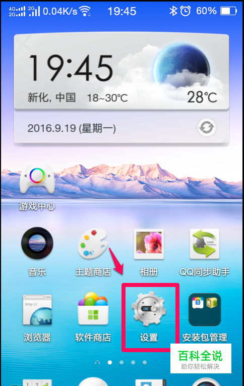 oppo某型号手机在锁屏界面设置机主姓名和头像的方法 步骤: 打开手机,向上滑动,打开如图所示界面,点击(手指触摸,下同)【设置】;