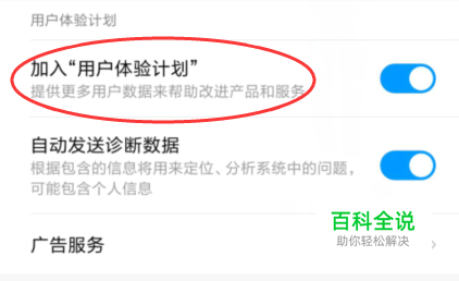 这个【加入用户体验计划】就没开的话,我们就可以开启下,如图。