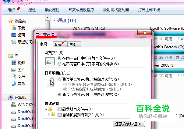 方法:1、在不双击子目录下任何文件夹的前提下,打开系统文件夹选项