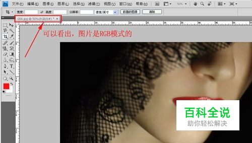 在网上找一张图片,并用ps cs4软件打开它。(如下图)大家看一下,在ps图像窗口的上方,有一个小框。里面有图片的名称、格式和色彩模式等信息。可以看出,这张图片是RGB格式的。