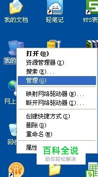 在这里我介绍一种我在XP中常用的方法,首先在桌面上右键点击“我的电脑”,从弹出的菜单中点击“管理。”大家也可以在控制面板中找到用户,并打开。