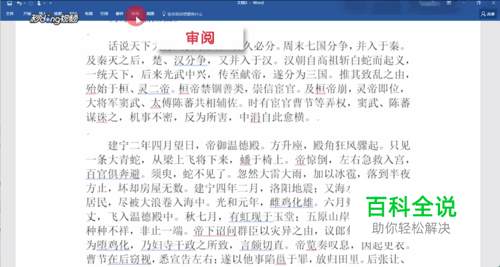 首先打开Word文档,单击“审阅”选项卡