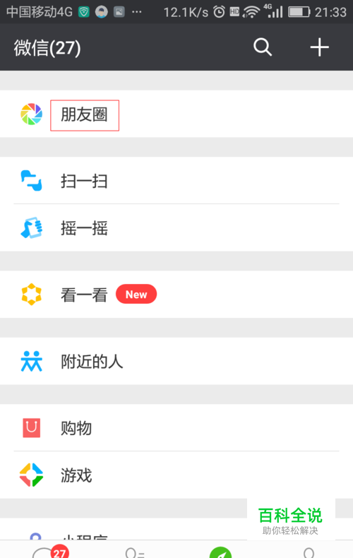 点击“朋友圈”,进入朋友圈