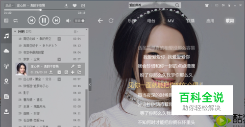 如图,播放一首歌曲。点击“歌词”,可以看到歌词和歌手写真。