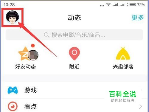 进入QQ页面后,在左上角, 点QQ自己的头像,如图所示。