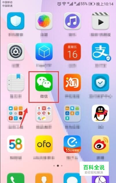 首先,打开手机,找到“微信”;