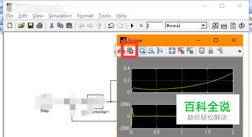 单击scope模块图片,我们就可以查看数据的波形;新出来的界面中单击选中编辑图标,如图所示。