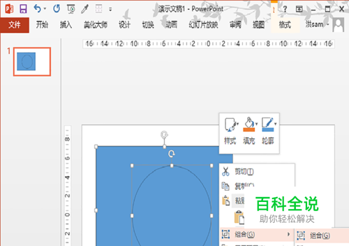 在ppt里,如果我们要组合两个形状,一般是选中——右键——组合。这当然有些麻烦,Ctrl+G即可解决。