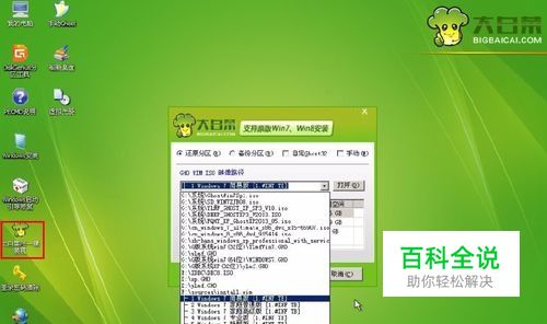 打开系统桌面上的大白菜PE一键装机,接着通过此工具找到所准备的原版win7系统镜像文件,选择完毕后工具会读取出系统镜像文件内的信息并让用户选择所读取到的系统版本