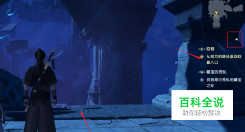 从白梦泽出来后,就会有一个主线任务:从前方的捷径返回回廊入口。右上角的小地图上有一个小三角就是目前的目的地,所以向前走。