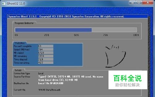 稍后会弹出命令提示符窗口和GHOST32两个界面→OK。
