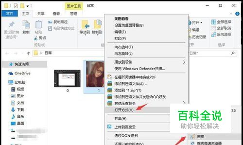 首先,将鼠标放在图片上,单击鼠标右键,选择“ 打开方式>画图”选项,如图所示。