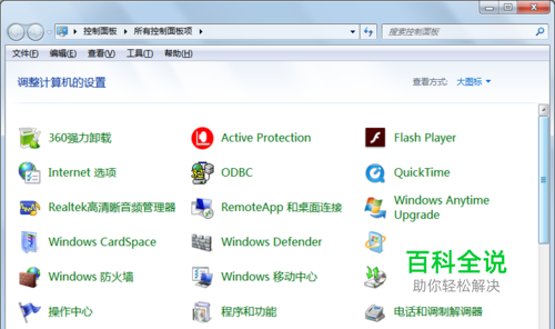 执行开始-控制面板命令,调出控制面板对话框。