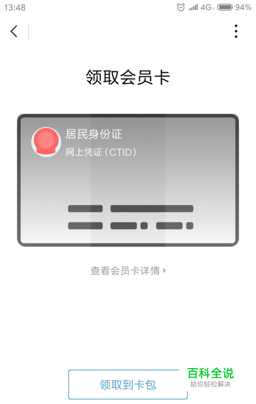 注册完成之后可以看到自己的居民身份证卡,这个是可以领取的,我们需要点击一下领取即可。