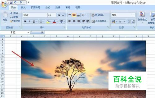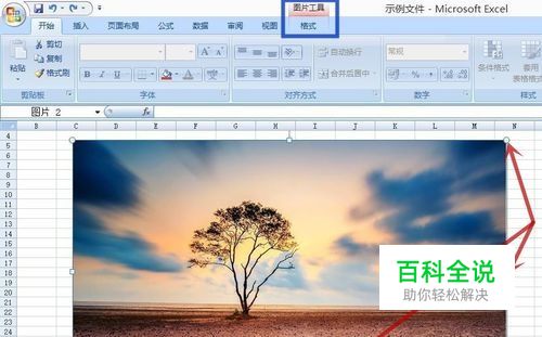 打开一张带有示例图片的工作簿,如下图所示,准备对其中的图片(图中红色箭头所指)大小进行设置