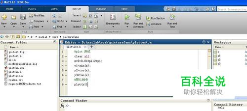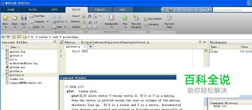 我们创建plottest.m文件来编写matlab的plot函数测试代码,具体参考下面的经验,我们输入help plot来查看参数,如下图。