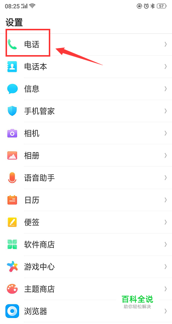 手指往上滑动手机屏幕,找到【电话】选项