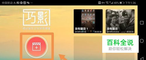 首先需要点按手机中的巧影标志,进入巧影界面后点按箭头指向的加号标志,如下图所示。