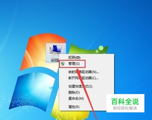 首先我们右键电脑桌面上的计算机图标,在弹出的选项中,我们点击“管理”选项 如图