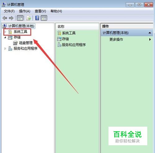 我们打开计算机管理之后,点击左边的“系统工具” 如图
