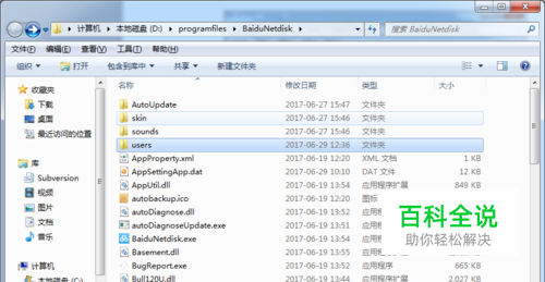 右键点击百度云客户端快捷方式---选择“打开文件位置(XP不适用)”,或点属性,查看快捷方式目标,一般在“C:\Users\Administrator\AppData\Roaming\baidu\BaiduYunGuanjia\”位置,打开后可以看到有个user目录,双击打开,如下图所示。