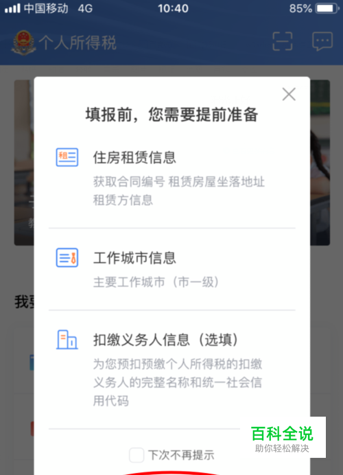 在填报界面,页面会弹出提醒,告知我们如果填报了住房贷款利息,是不能再次填报住房租金的,我们点击知道了。