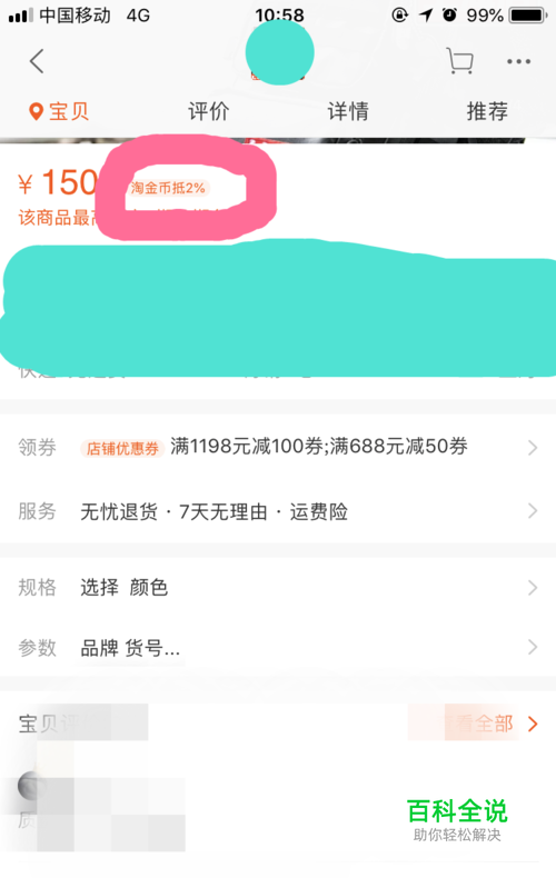 在可以用淘金币抵扣的商品界面,我们可以看到淘金币抵扣百分比。 这时候我们就可以用淘金币来得到优惠了。