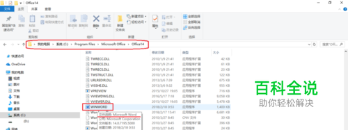 打开Microsoft Office的安装目录,如图,找到图中所示的Microsoft Word。
