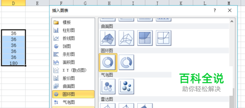 选中所有的数据,插入环形图,选中环形图。