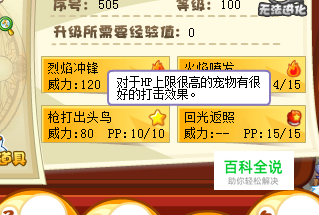“枪打出头鸟”适用于 还愿蛇仙和音速犬 ,是个100%命中的技能。当对手总血值400+时,裁掉对手当前血量的1/3。当对手总血值小于400时,按普通系技能,80威力来算 。