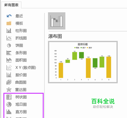 一、六种图表类型。可视化对于有效的数据分析至关重要。 在 Excel2016 中,添加了六种新图表以帮助你创建财务或分层信息的一些最常用的数据可视化,以及显示你的数据中的统计属性。在“插入”选项卡上单击“插入层次结构图表”,可使用“树状图”或“旭日图”图表,单击“插入瀑布图或股价图”可使用“瀑布图”,或单击“插入统计图表”可使用“直方图”、“排列图”或“箱形图”。