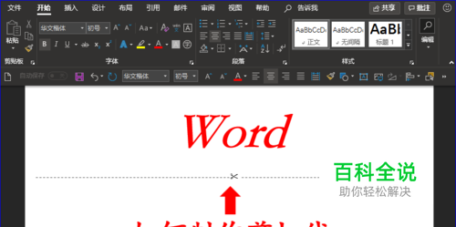 最后调整剪切线的位置,将其移至需要的位置上,这样在Word中绘制剪切线就做好了。如图所示: