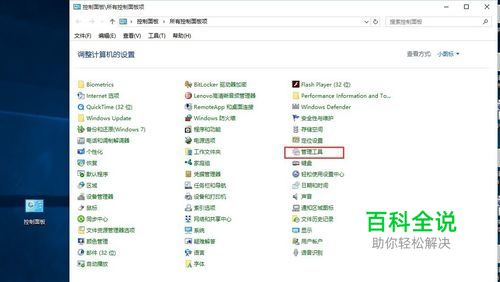 打开控制面板,在众多的命令菜单中,选择点击:管理工具