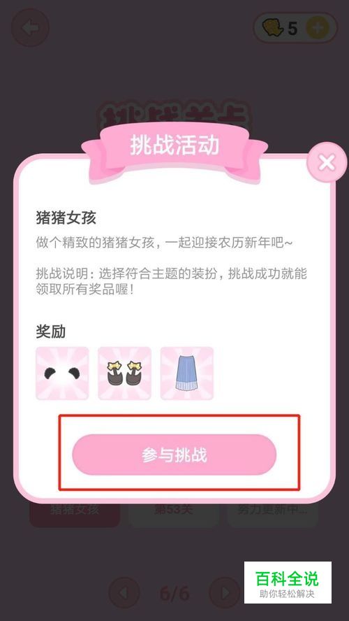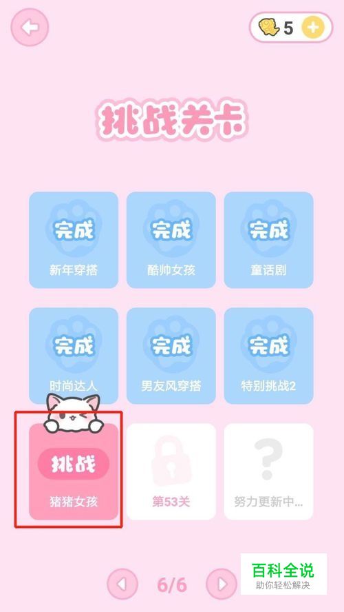 辫子选择有猪的,点击√,成功通过挑战 猪猪女孩