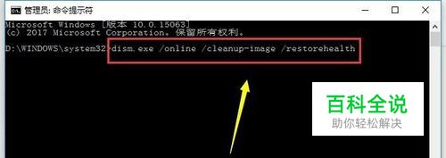 接着输入dism.exe /online /cleanup-image /restorehealth 回车,注意/前有空格,你可以直接复制,执行完成后,重启电脑即可,如下图所示