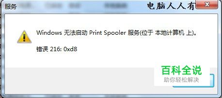 截图出错的提示如下: Windows无法启动print spooler服务(位于本地计算机上)错误216:0xd8