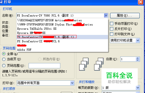 又回到打印界面进行关键设置,就是数字参数的设置,在页面范围里设置 4,1,2,3 (以4页为例)这点是正确输出小册子的关键因素之一