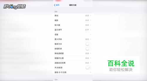 在设置页面,点击“通用”,点击“辅助功能”。
