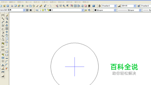 首先打开AutoCAD软件界面。接着画一个圆,标出圆心。