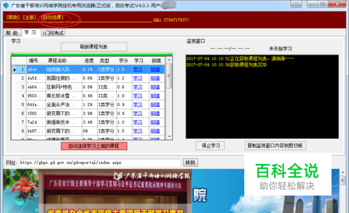 选课完成后,请再“学习”选项卡里的课程列表下面红色的“自动连续学习上面的课程”按钮,软件将自动为您学习。软件自动答题、自动听课、自动换课,你只需开着软件即可。可以把软件最小化,不影响你处理公文、看电影、听音乐、炒股票。